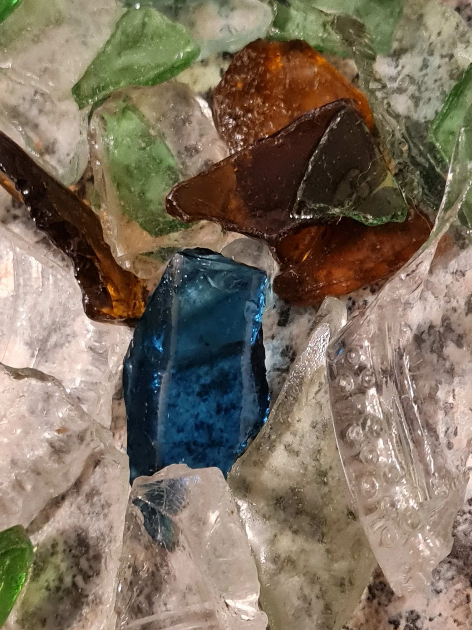 Ein Blick auf das gesammelte Glas genügte – und die Vision für diese drei Werke stand augenblicklich und mit aller Kraft vor mir. Es war, als hätte das Seeglas auf genau diesen Moment gewartet.